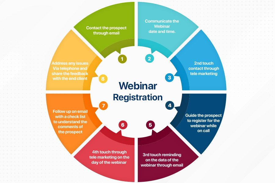 At R.D. Trinitas, webinar registration services are all-encompassing. We contact the right set of people, facilitate registration, troubleshoot, issue timely reminders and even gather feedback!